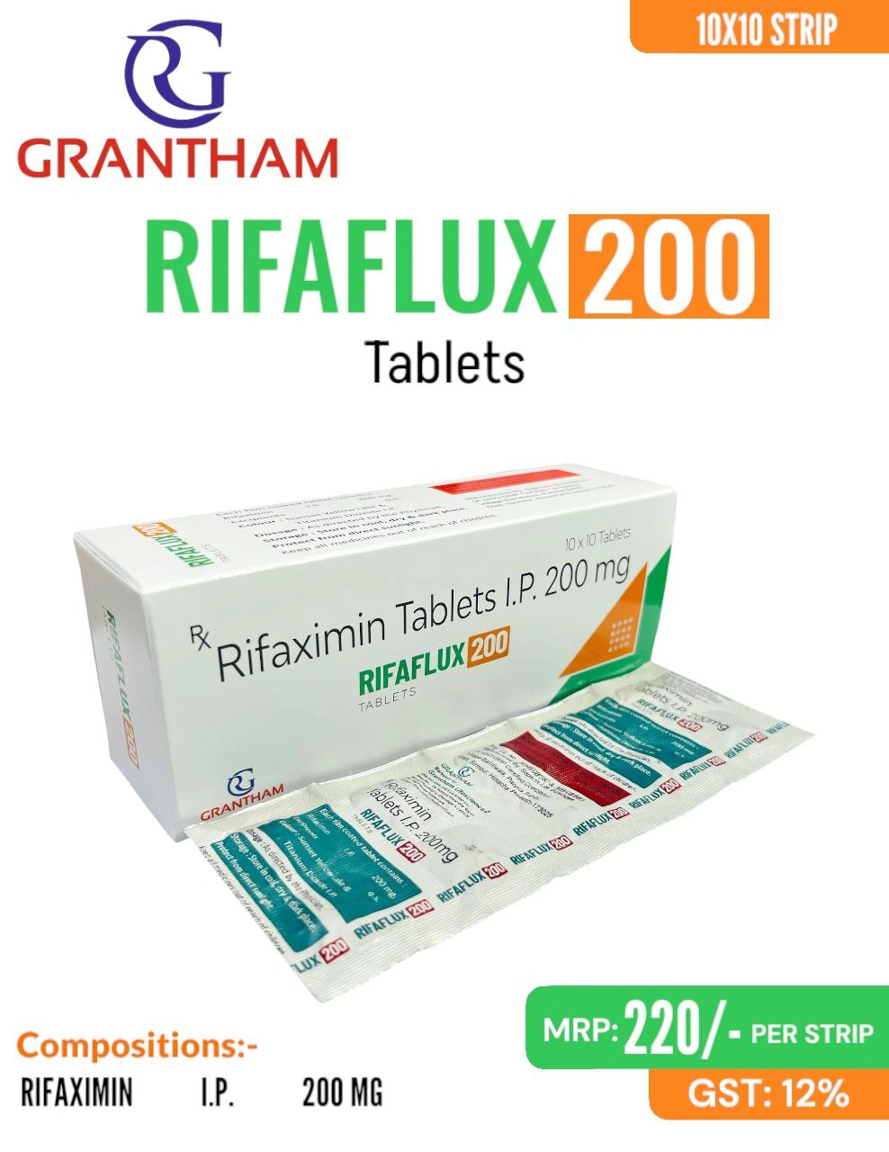 Rifaflux 200 is an antibiotic targeting gut infections and irritable bowel syndrome (IBS). Rifaximin acts locally in the intestines to reduce harmful bacteria without major systemic absorption, ensuring high safety.